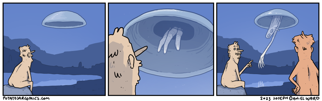 EXTRADIMENSIONAL VISITOR by Joseph Daniel Ward on December 6, 2023 at 5:24 pm Oh, it’s a stranger! Put this thing elsewhere: Click to share on X (Opens in new window) X Click to share on Facebook (Opens in new window) Facebook Click to share on Reddit (Opens in new window) Reddit Click to share on Tumblr (Opens in new window) Tumblr └ Tags: howdy, ufo Comment