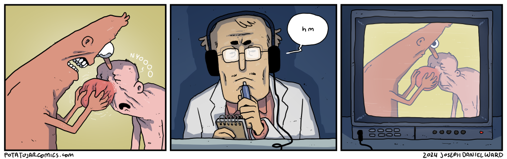 VIOLENCE by Joseph Daniel Ward on February 7, 2024 at 6:34 pm Don’t mind me, carry on! Put this thing elsewhere: Click to share on X (Opens in new window) X Click to share on Facebook (Opens in new window) Facebook Click to share on Reddit (Opens in new window) Reddit Click to share on Tumblr (Opens in new window) Tumblr └ Tags: nose, tv Comment
