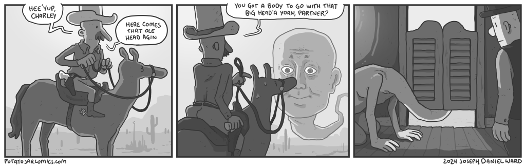 YES I DO by Joseph Daniel Ward on February 9, 2024 at 6:29 pm Thank you for asking! Put this thing elsewhere: Click to share on X (Opens in new window) X Click to share on Facebook (Opens in new window) Facebook Click to share on Reddit (Opens in new window) Reddit Click to share on Tumblr (Opens in new window) Tumblr └ Tags: cowboy, desert, head, horse, howdy Comment
