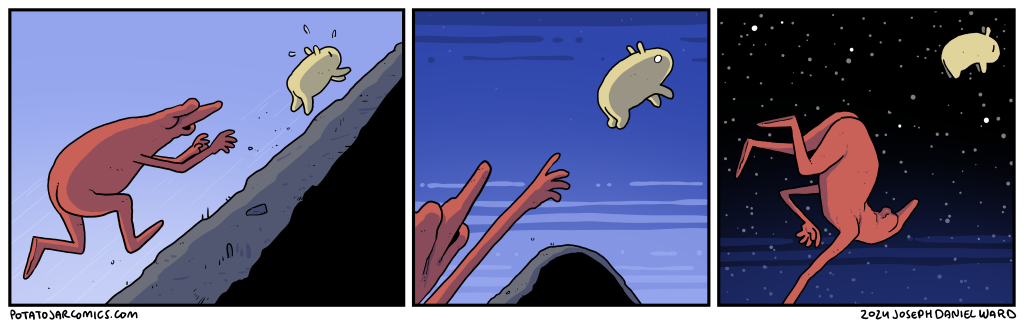THE GRABBER by Joseph Daniel Ward on February 28, 2024 at 6:19 pm Another grabbing thwarted, apologies to The Grabber. Put this thing elsewhere: Click to share on X (Opens in new window) X Click to share on Facebook (Opens in new window) Facebook Click to share on Reddit (Opens in new window) Reddit Click to share on Tumblr (Opens in new window) Tumblr └ Tags: little guy, space Comment