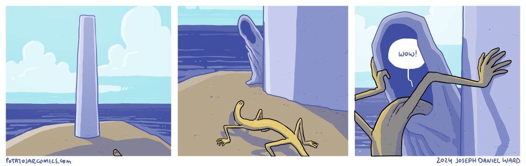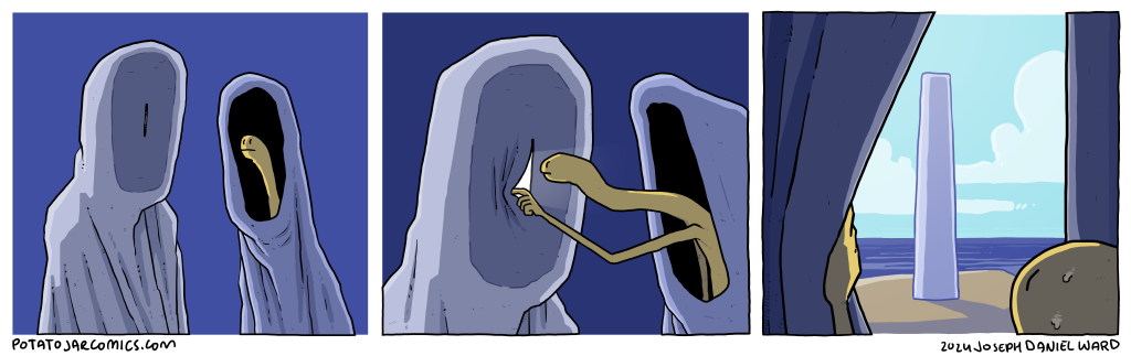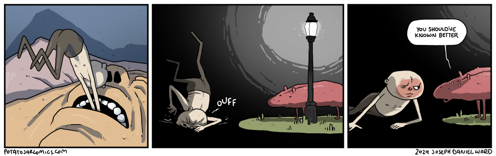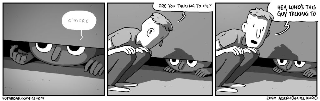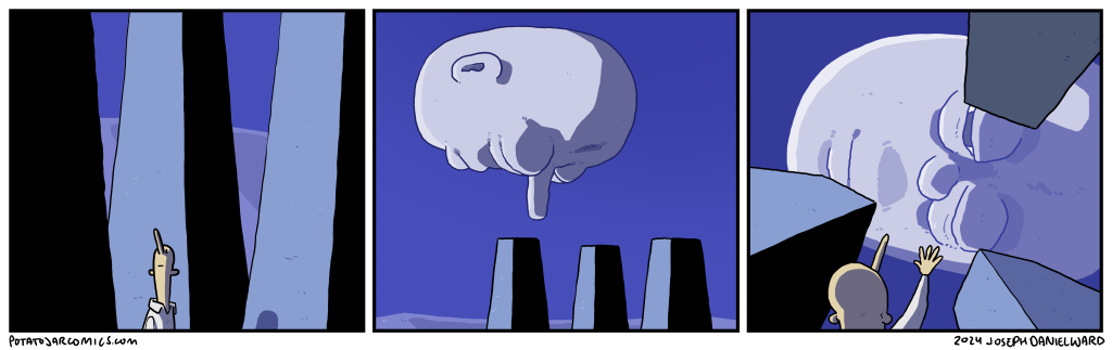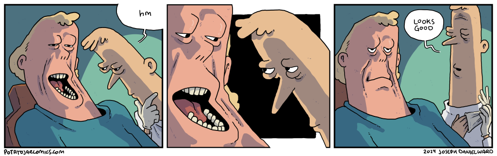 INSPECTION (no comic on Wed 4/3 & Fri 4/5) by Joseph Daniel Ward on March 29, 2024 at 5:05 pm Just checking, just checking. EDIT: Sorry friends, no comics this week — I’ll see you on Wednesday the 10th! Put this thing elsewhere: Click to share on X (Opens in new window) X Click to share on Facebook (Opens in new window) Facebook Click to share on Reddit (Opens in new window) Reddit Click to share on Tumblr (Opens in new window) Tumblr └ Tags: teeth Comment