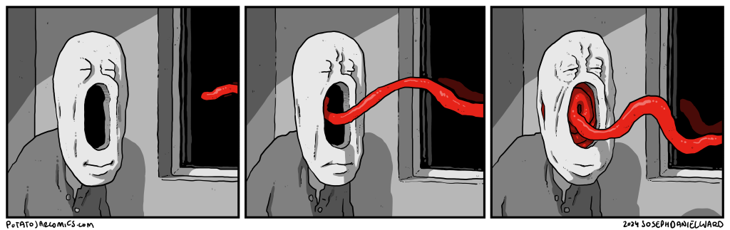 Oh, no thank you! Edit: Sorry friends, no comic today (Friday, August 23)! I’ll see ya Wednesday. EDIT 2: Sorry again, friends!! This is turning out to be a tricky week for comics. Fingers crossed, but next comic should be[…]↓ Read the rest of this entry…