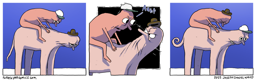 HEY MAN by Joseph Daniel Ward on February 12, 2025 at 3:22 pm How’s it going in here? ALSO: No comic on Friday, Feb. 14 — sorry friends! Put this thing elsewhere: Click to share on X (Opens in new window) X Click to share on Facebook (Opens in new window) Facebook Click to share on Reddit (Opens in new window) Reddit Click to share on Tumblr (Opens in new window) Tumblr Comment