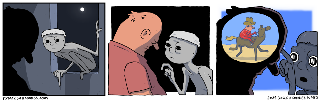 VISITOR by Joseph Daniel Ward on April 4, 2025 at 6:31 pm Finally, the aliens will know about cowboys. Put this thing elsewhere: Click to share on X (Opens in new window) X Click to share on Facebook (Opens in new window) Facebook Click to share on Reddit (Opens in new window) Reddit Click to share on Tumblr (Opens in new window) Tumblr Comment