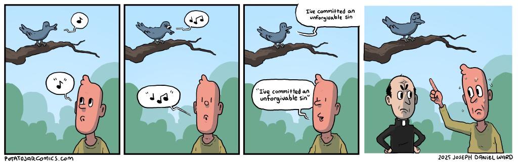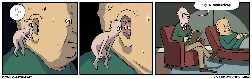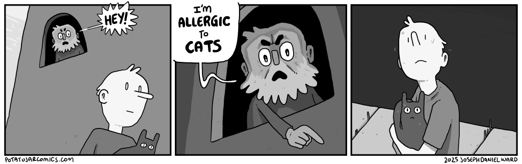 SORRY MAN by Joseph Daniel Ward on April 9, 2025 at 4:36 am Allergic to what? ALSO: Sorry friends, gotta skip the next two comics — I’ll see ya on Friday the 18th! Put this thing elsewhere: Click to share on X (Opens in new window) X Click to share on Facebook (Opens in new window) Facebook Click to share on Reddit (Opens in new window) Reddit Click to share on Tumblr (Opens in new window) Tumblr Comment