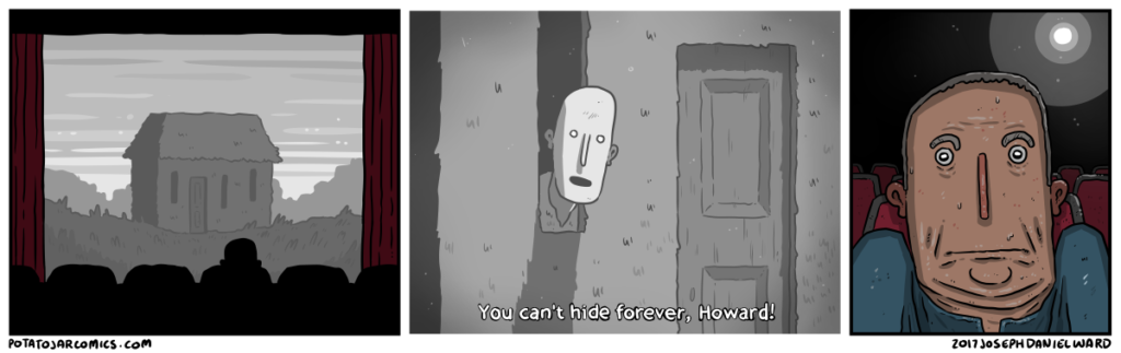 HOWARD II by Joseph Daniel Ward on October 11, 2017 at 5:01 am Characters: Howard You biffed it, Howard. Put this thing elsewhere: Click to share on X (Opens in new window) X Click to share on Facebook (Opens in new window) Facebook Click to share on Reddit (Opens in new window) Reddit Click to share on Tumblr (Opens in new window) Tumblr └ Tags: film, oh no, oops, theater Comment