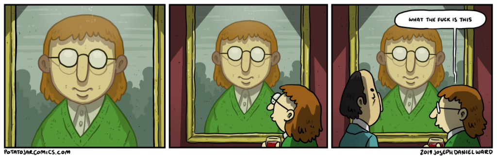 MISTER ART & THE MYSTERIOUS PHOTOGRAPH by Joseph Daniel Ward on April 24, 2019 at 4:42 am Characters: Mister Art Maybe YOU’RE the one that’s cursed, ever think of that? Put this thing elsewhere: Click to share on X (Opens in new window) X Click to share on Facebook (Opens in new window) Facebook Click to share on Reddit (Opens in new window) Reddit Click to share on Tumblr (Opens in new window) Tumblr └ Tags: curse, hmm, photograph Comment