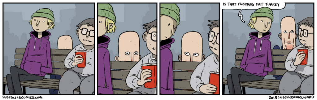 I feel like I’ve swallowed a bowl of Pat. Anyway, yes: this comic is 50% cop-out. But the other 50% is Pat Turkey. Happy Thanksgiving.
