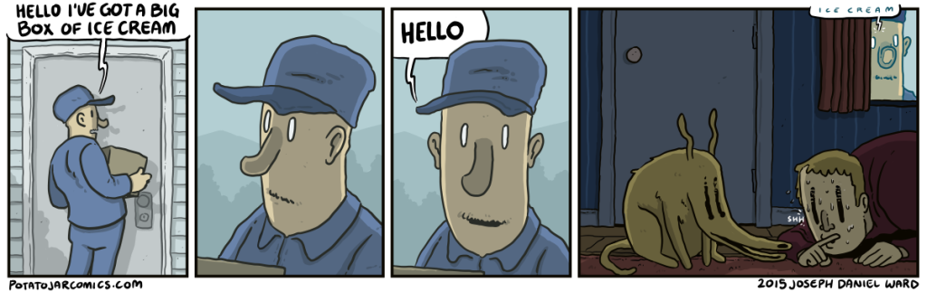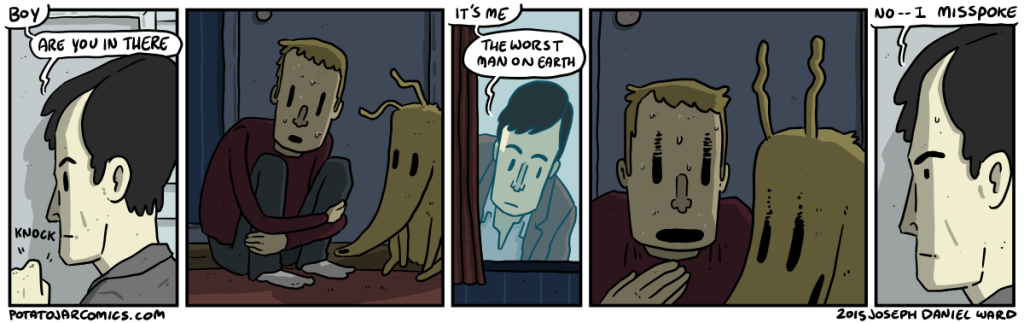Please don’t say anything dog — please — please just stay quiet, dog, the worst man on Earth is out there