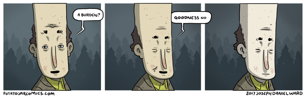 A VERY TALL HEAD by Joseph Daniel Ward on September 6, 2017 at 5:31 am To be fair, I do have to avoid power lines. Also, blood can’t reach the top of my ten-foot-long brain. Put this thing elsewhere: Click to share on X (Opens in new window) X Click to share on Facebook (Opens in new window) Facebook Click to share on Reddit (Opens in new window) Reddit Click to share on Tumblr (Opens in new window) Tumblr └ Tags: burden, tall head, woods Comment