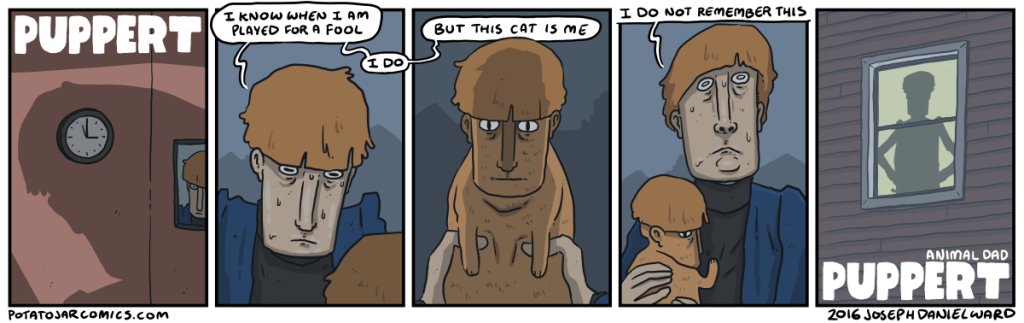 PUPPERT III by Joseph Daniel Ward on February 16, 2016 at 6:28 am Characters: Puppert Puppert can’t keep track of every Puppert. Put this thing elsewhere: Click to share on X (Opens in new window) X Click to share on Facebook (Opens in new window) Facebook Click to share on Reddit (Opens in new window) Reddit Click to share on Tumblr (Opens in new window) Tumblr └ Tags: cat Puppert, cat?, Pupperts Comment