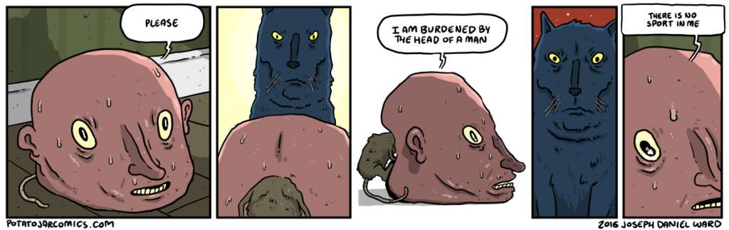 TOM AND MAN-HEAD by Joseph Daniel Ward on July 5, 2016 at 1:02 am I recognize that Jerry is a mouse, but I like this title. Put this thing elsewhere: Click to share on X (Opens in new window) X Click to share on Facebook (Opens in new window) Facebook Click to share on Reddit (Opens in new window) Reddit Click to share on Tumblr (Opens in new window) Tumblr └ Tags: cat?, man-head, rat, sport Comment