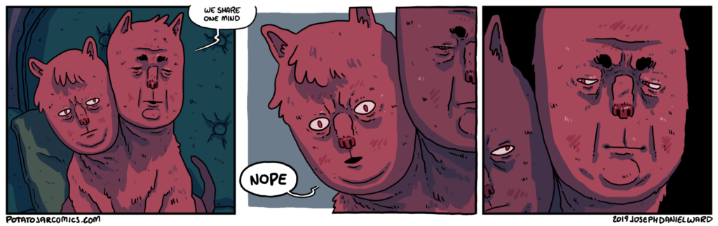 ONE MIND by Joseph Daniel Ward on April 26, 2019 at 6:17 am Ah, the give and take of a single mind. Put this thing elsewhere: Click to share on X (Opens in new window) X Click to share on Facebook (Opens in new window) Facebook Click to share on Reddit (Opens in new window) Reddit Click to share on Tumblr (Opens in new window) Tumblr └ Tags: cat?, one mind, two heads, two minds Comment