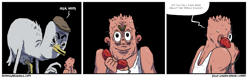 BIG DISCOUNT by Joseph Daniel Ward on July 10, 2020 at 3:18 am How big of a bird? Put this thing elsewhere: Click to share on X (Opens in new window) X Click to share on Facebook (Opens in new window) Facebook Click to share on Reddit (Opens in new window) Reddit Click to share on Tumblr (Opens in new window) Tumblr └ Tags: bird, discount Comment