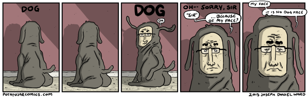 THAT DARN FACE KING by Joseph Daniel Ward on February 11, 2016 at 4:29 am I guess this is not so much a “comic strip” as it is a “jokeless tableau.” Put this thing elsewhere: Click to share on X (Opens in new window) X Click to share on Facebook (Opens in new window) Facebook Click to share on Reddit (Opens in new window) Reddit Click to share on Tumblr (Opens in new window) Tumblr └ Tags: caste system?, dog, Face King Comment