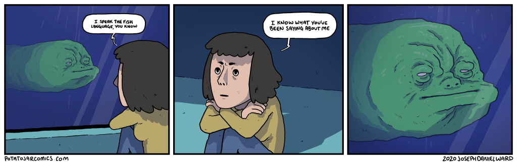 AQUARIUM II by Joseph Daniel Ward on September 11, 2020 at 5:48 am But does he understand the human language? Put this thing elsewhere: Click to share on X (Opens in new window) X Click to share on Facebook (Opens in new window) Facebook Click to share on Reddit (Opens in new window) Reddit Click to share on Tumblr (Opens in new window) Tumblr └ Tags: fish language Comment