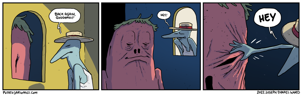 HEY MAN by Joseph Daniel Ward on July 10, 2024 at 5:49 pm How’s it going? ALSO: Sorry to do this again so soon, but no comic this Friday (the 12th)! I’ll see ya on Wednesday the 17th. Put this thing elsewhere: Click to share on X (Opens in new window) X Click to share on Facebook (Opens in new window) Facebook Click to share on Reddit (Opens in new window) Reddit Click to share on Tumblr (Opens in new window) Tumblr └ Tags: coffee, get outta here, hello Comment