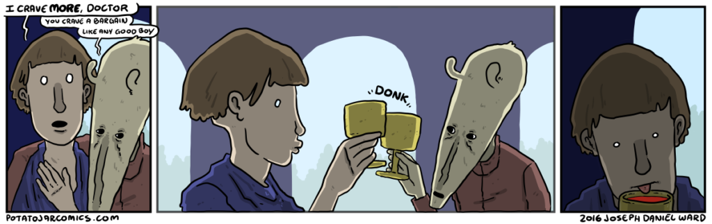 DONK by Joseph Daniel Ward on May 26, 2016 at 5:42 am I can’t tell if you have my best interest at heart, Doctor. Put this thing elsewhere: Click to share on X (Opens in new window) X Click to share on Facebook (Opens in new window) Facebook Click to share on Reddit (Opens in new window) Reddit Click to share on Tumblr (Opens in new window) Tumblr └ Tags: arched windows, dog, donk, goblets Comment