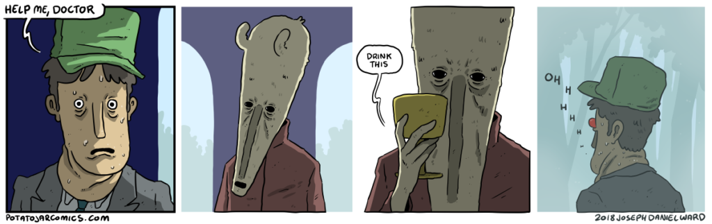 HELP ME, DOCTOR DONK by Joseph Daniel Ward on April 27, 2018 at 4:46 am You’ve met this doctor before, haven’t you. (He has not changed one bit) Put this thing elsewhere: Click to share on X (Opens in new window) X Click to share on Facebook (Opens in new window) Facebook Click to share on Reddit (Opens in new window) Reddit Click to share on Tumblr (Opens in new window) Tumblr └ Tags: 2 Donk 2 Honk, arched windows, doctor, dog, donk, goblets, hat, help, throat Comment