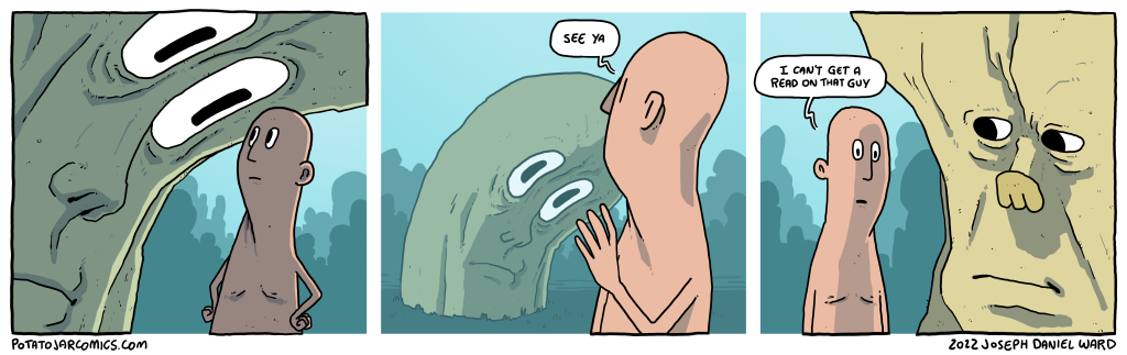 Yeah: Definitely a guy in those walls. EDIT: Sorry for the delay, friends, but Friday’s comic will go up on Saturday instead (7/20)! I have a comic in progress, but I woke up with a big ol’ headache again —[…]↓ Read the rest of this entry…