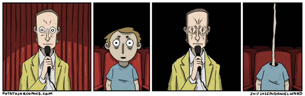 IT HAPPENS by Joseph Daniel Ward on December 8, 2017 at 5:45 am This guy needs a bigger audience. Put this thing elsewhere: Click to share on X (Opens in new window) X Click to share on Facebook (Opens in new window) Facebook Click to share on Reddit (Opens in new window) Reddit Click to share on Tumblr (Opens in new window) Tumblr └ Tags: chairs, head, neck, stand-up comedy? Comment