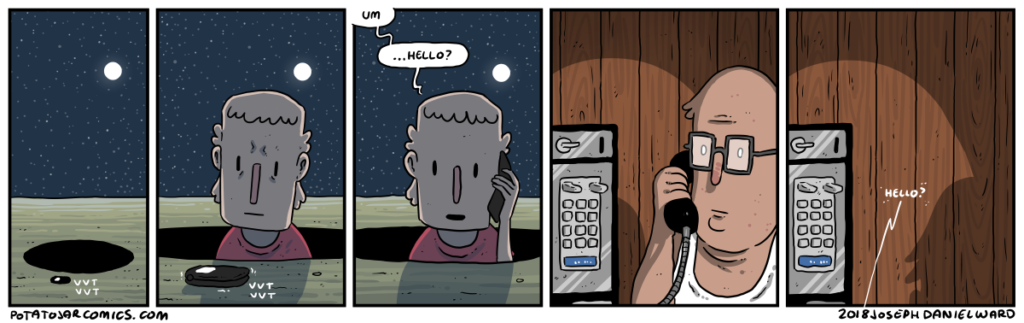 MYSTERY PHONE by Joseph Daniel Ward on May 30, 2018 at 4:56 am Characters: Friend, Hole-Bud I only make comics about phones now. Put this thing elsewhere: Click to share on X (Opens in new window) X Click to share on Facebook (Opens in new window) Facebook Click to share on Reddit (Opens in new window) Reddit Click to share on Tumblr (Opens in new window) Tumblr └ Tags: cell phone, hello, pay phone, shh Comment