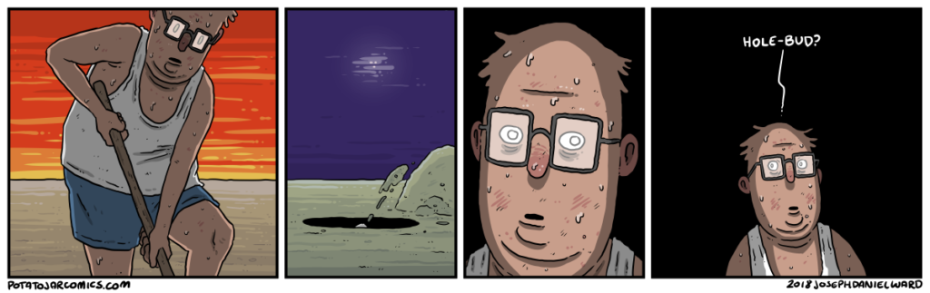 HOLE-BUD NIGHTMARE III by Joseph Daniel Ward on October 24, 2018 at 4:27 am Characters: Friend, Hole-Bud Hey man, I don’t dig a hole for just anyone. Put this thing elsewhere: Click to share on X (Opens in new window) X Click to share on Facebook (Opens in new window) Facebook Click to share on Reddit (Opens in new window) Reddit Click to share on Tumblr (Opens in new window) Tumblr └ Tags: hello, hole, oh no Comment