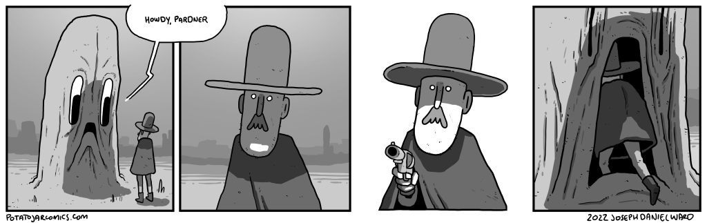 HOWDY by Joseph Daniel Ward on May 11, 2022 at 5:13 pm Oops, apparently I’ve named two other comics “Howdy”. Put this thing elsewhere: Click to share on X (Opens in new window) X Click to share on Facebook (Opens in new window) Facebook Click to share on Reddit (Opens in new window) Reddit Click to share on Tumblr (Opens in new window) Tumblr └ Tags: hi Comment