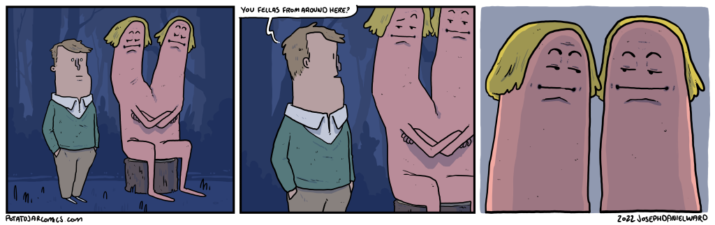 I KNOW THIS MAN (edit: No comics on Feb 8th & 10th) by Joseph Daniel Ward on February 3, 2023 at 2:26 pm Are you sure? EDIT: Sorry again, friends; I feel like I’ve had to do this a lot lately, but — no comics this week, the 8th and the 10th! Put this thing elsewhere: Click to share on X (Opens in new window) X Click to share on Facebook (Opens in new window) Facebook Click to share on Reddit (Opens in new window) Reddit Click to share on Tumblr (Opens in new window) Tumblr └ Tags: howdy Comment