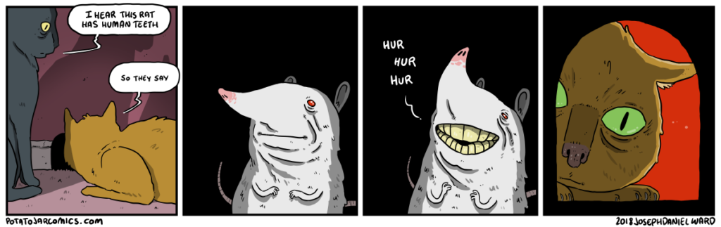 RAT WITH HUMAN TEETH by Joseph Daniel Ward on May 18, 2018 at 5:16 am Characters: human teeth No one told you to look at this rat. Put this thing elsewhere: Click to share on X (Opens in new window) X Click to share on Facebook (Opens in new window) Facebook Click to share on Reddit (Opens in new window) Reddit Click to share on Tumblr (Opens in new window) Tumblr └ Tags: cats, human teeth, rat Comment