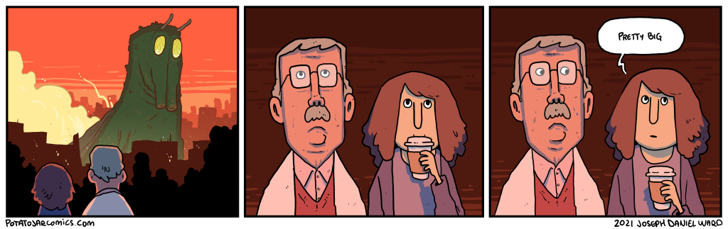 DESTRUCTION by Joseph Daniel Ward on December 31, 2021 at 4:20 pm Happy New Year! …’s Eve. Put this thing elsewhere: Click to share on X (Opens in new window) X Click to share on Facebook (Opens in new window) Facebook Click to share on Reddit (Opens in new window) Reddit Click to share on Tumblr (Opens in new window) Tumblr └ Tags: coffee, kaiju Comment
