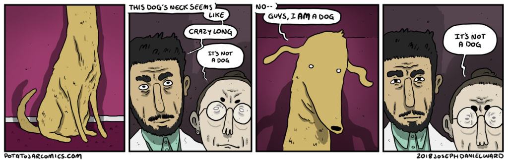 YES IT IS by Joseph Daniel Ward on April 4, 2018 at 6:03 am Two dogs make a dog, but what else makes a dog? Put this thing elsewhere: Click to share on X (Opens in new window) X Click to share on Facebook (Opens in new window) Facebook Click to share on Reddit (Opens in new window) Reddit Click to share on Tumblr (Opens in new window) Tumblr └ Tags: crazy long, dog, long neck, not dog Comment