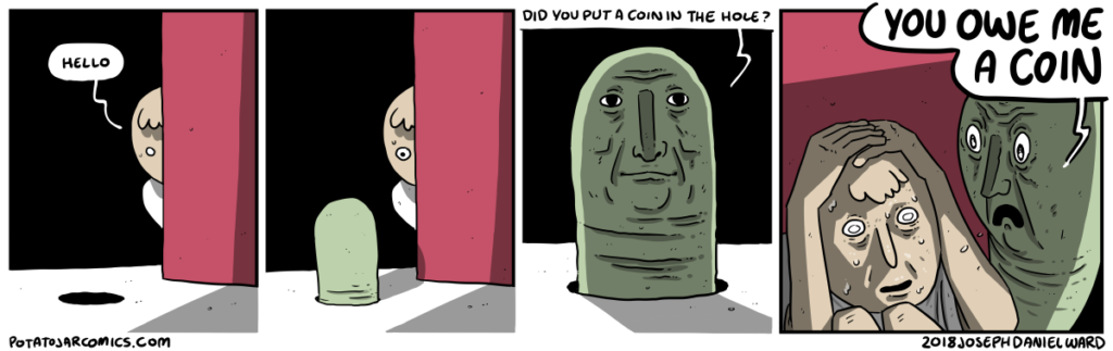 PAY THE MONEYWORM by Joseph Daniel Ward on May 11, 2018 at 4:38 am A big coin? A small coin? Put this thing elsewhere: Click to share on X (Opens in new window) X Click to share on Facebook (Opens in new window) Facebook Click to share on Reddit (Opens in new window) Reddit Click to share on Tumblr (Opens in new window) Tumblr └ Tags: coin, hole, moneyworm Comment