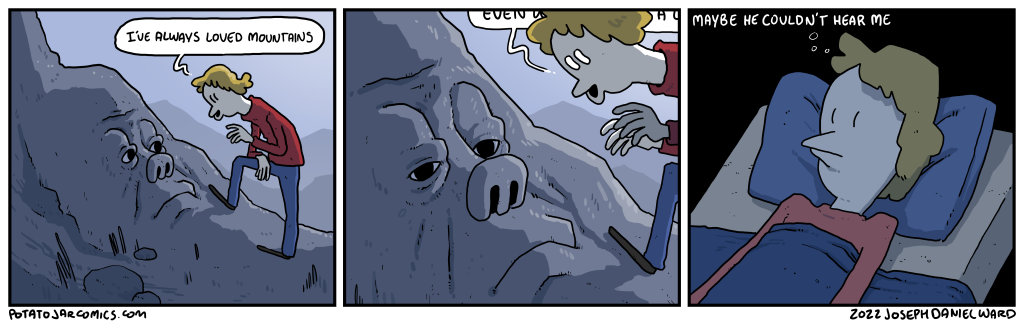 VERY IMPORTANT by Joseph Daniel Ward on April 20, 2022 at 4:54 pm Have courage, friend! Put this thing elsewhere: Click to share on X (Opens in new window) X Click to share on Facebook (Opens in new window) Facebook Click to share on Reddit (Opens in new window) Reddit Click to share on Tumblr (Opens in new window) Tumblr └ Tags: cat?, mountain Comment
