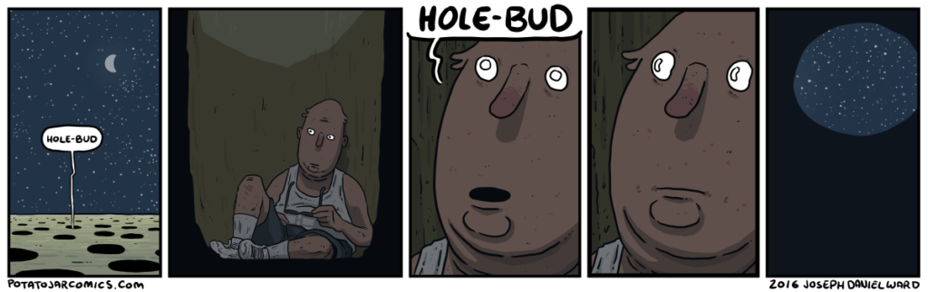 BUD HOLES by Joseph Daniel Ward on November 3, 2016 at 2:55 am Characters: Friend This is not such a bad hole. Put this thing elsewhere: Click to share on X (Opens in new window) X Click to share on Facebook (Opens in new window) Facebook Click to share on Reddit (Opens in new window) Reddit Click to share on Tumblr (Opens in new window) Tumblr └ Tags: hole, Hole-Bud, holes, night Comment