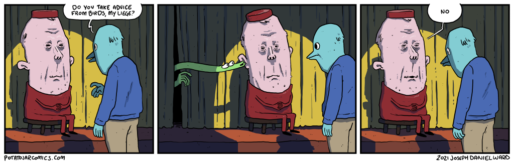 AN AUDIENCE by Joseph Daniel Ward on September 1, 2021 at 4:24 pm He may not, but I sure do. Put this thing elsewhere: Click to share on X (Opens in new window) X Click to share on Facebook (Opens in new window) Facebook Click to share on Reddit (Opens in new window) Reddit Click to share on Tumblr (Opens in new window) Tumblr └ Tags: advice, bird, no Comment
