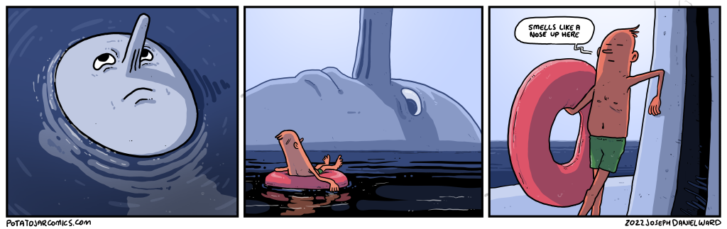 WHAT A MYSTERY by Joseph Daniel Ward on September 14, 2022 at 4:50 pm Smells like a what? Put this thing elsewhere: Click to share on X (Opens in new window) X Click to share on Facebook (Opens in new window) Facebook Click to share on Reddit (Opens in new window) Reddit Click to share on Tumblr (Opens in new window) Tumblr └ Tags: inner tube, nose, ocean Comment