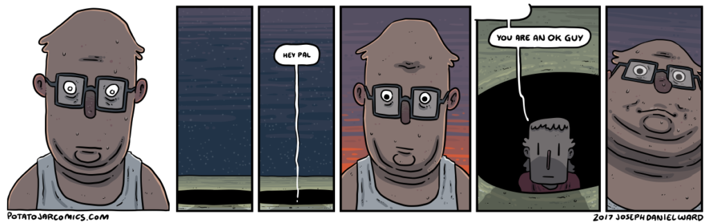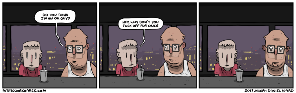 HOLE-BUD WALKS IT BACK by Joseph Daniel Ward on May 2, 2017 at 5:09 am Characters: Friend, Hole-Bud I could hear you breathing out there. Put this thing elsewhere: Click to share on X (Opens in new window) X Click to share on Facebook (Opens in new window) Facebook Click to share on Reddit (Opens in new window) Reddit Click to share on Tumblr (Opens in new window) Tumblr └ Tags: OK guy, thanks man Comment