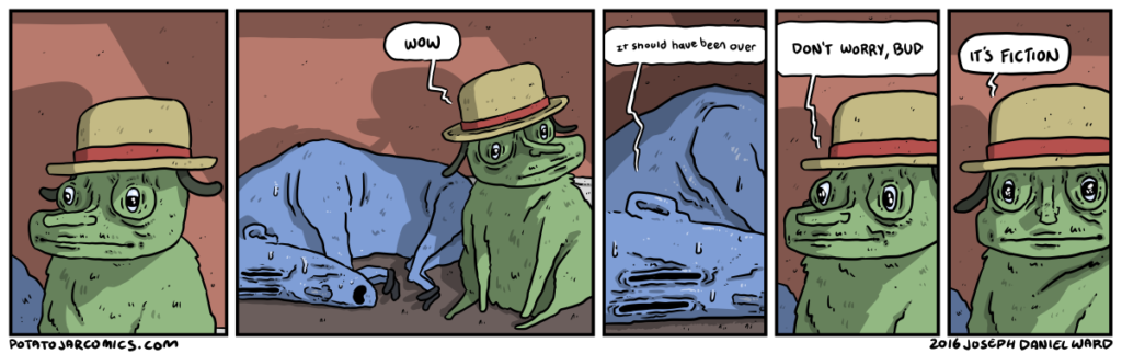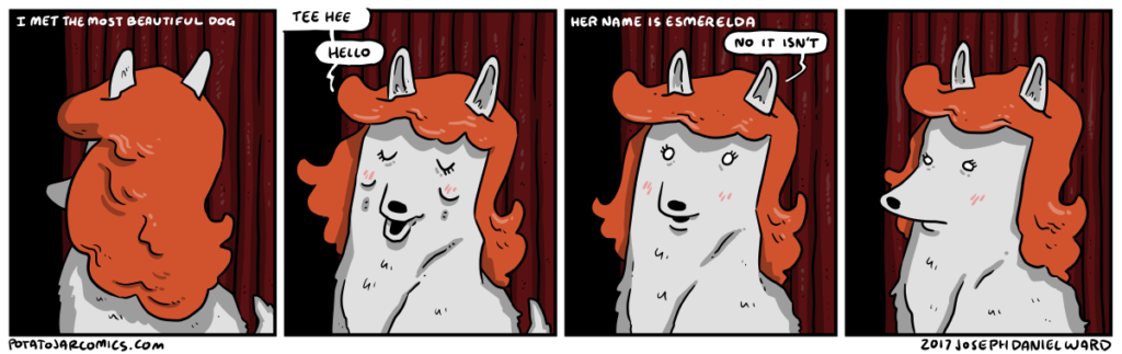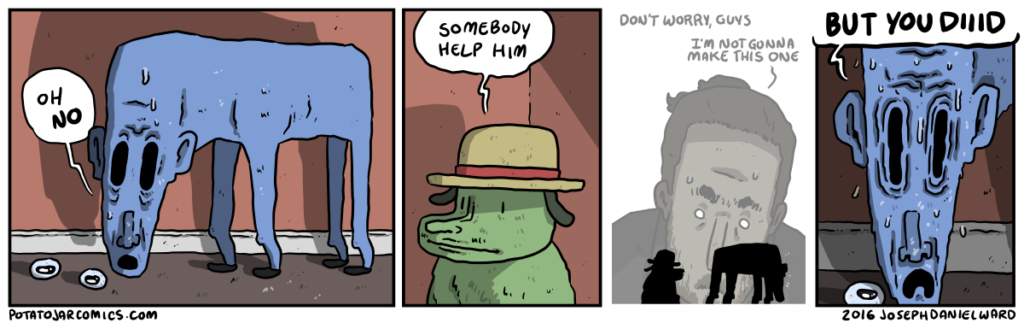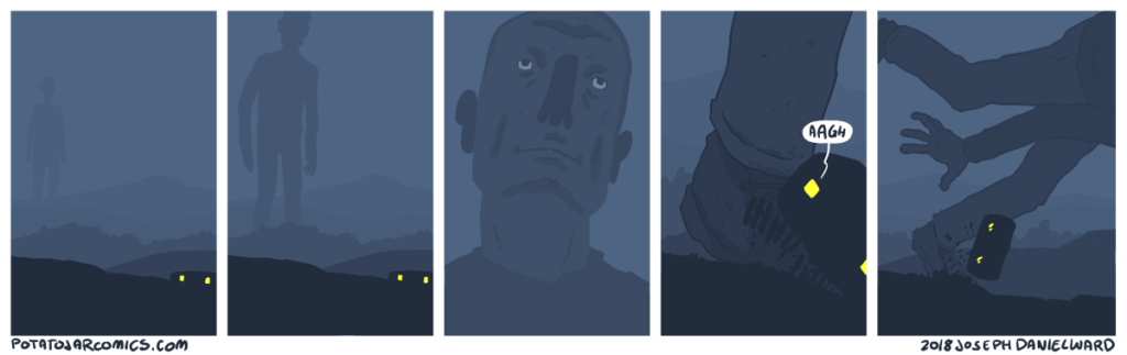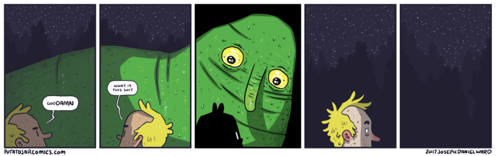 OK, you caught me — visit the fourth comic (that was a link) for reference. ALSO: Potatojar Comics will appear on Wednesday and Friday while The Wandering Horror is on hiatus!
