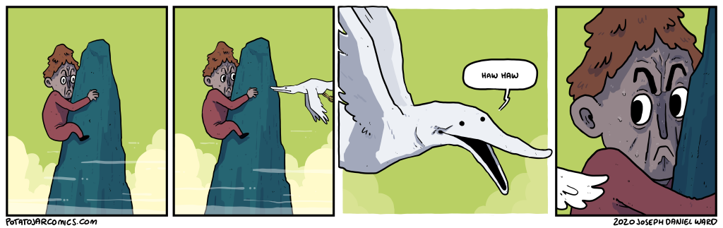 PERIL by Joseph Daniel Ward on September 23, 2020 at 2:45 am Not now, bird! Put this thing elsewhere: Click to share on X (Opens in new window) X Click to share on Facebook (Opens in new window) Facebook Click to share on Reddit (Opens in new window) Reddit Click to share on Tumblr (Opens in new window) Tumblr └ Tags: bird, no thank you, peak Comment