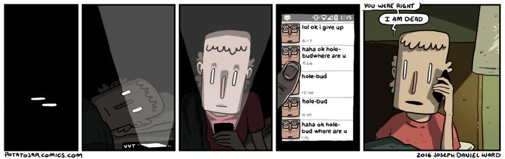 I’m losing my grip on these being at all standalone, but hot dog: I sure do like making comics about Hole-bud & Friend. Also, don’t forget: there is a comic on Thursday, two comics a week are back!